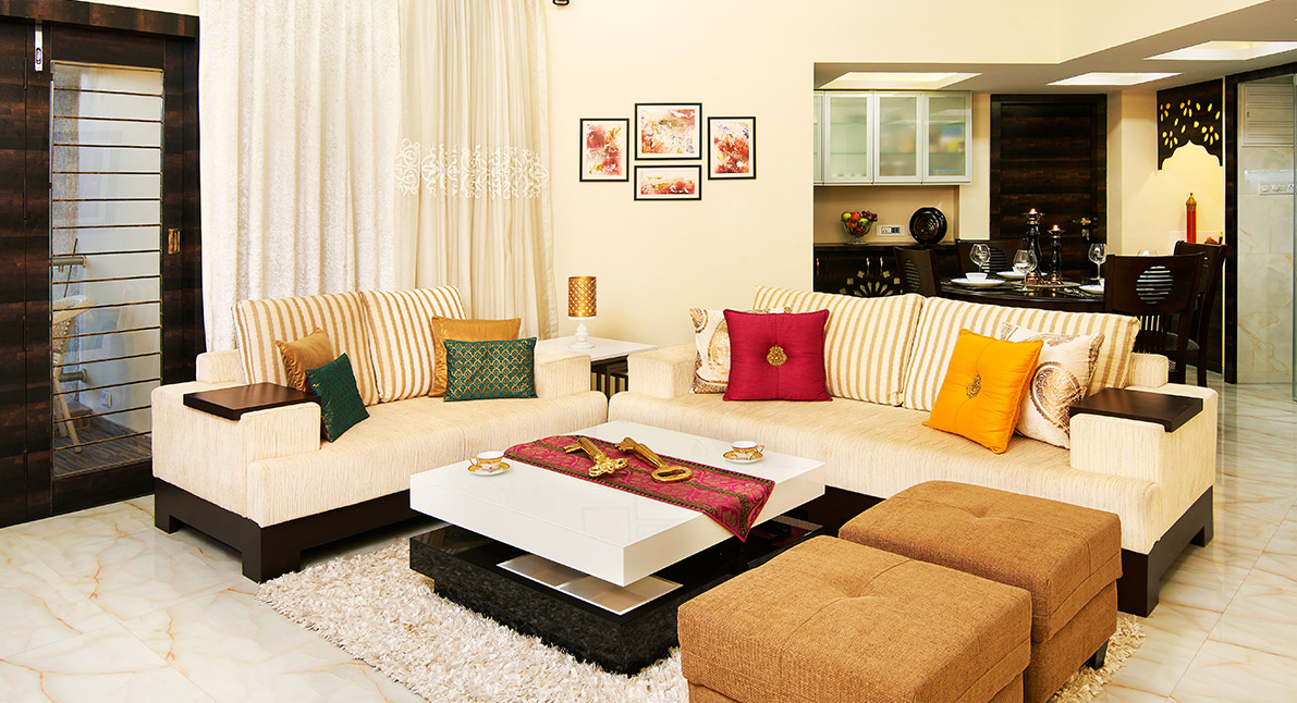 living room making it look open and grand. All the paintings, accessories, mirrors etc in the